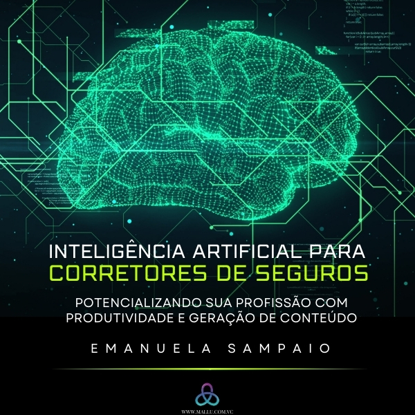 Este é um ebook em formato PDF, com 20 páginas, feito para corretores de seguros que querem usar a inteligência artificial para se destacar no mercado.